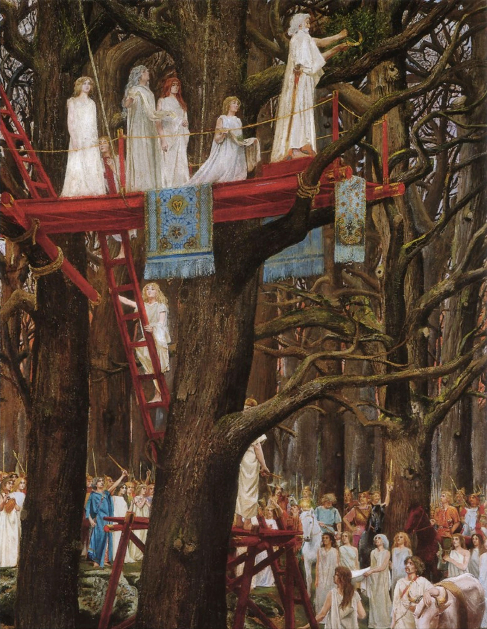 Bereits die Griechen der Antike waren von der Mistel fasziniert und sahen diese als Zeichen von Hermes, dem Boten des Olymps und Gott der Gesundheit. Auch von den keltischen Priestern, speziell den gallischen Druiden, wurde sie als heilige Pflanze verehrt. Sie schätzten nicht nur ihre heilenden Eigenschaften, sondern glaubten auch, dass sie den Kriegern Immunität verleihe und ihnen zusätzliche Kraft schenke. Jeweils zur Winter- und Sommersonnenwende kleideten sich die Druiden in Weiss und einer von ihnen wurde auserwählt, um mit einer goldenen Sichel die Misteln zu ernten. Als besonders wirksam und begehrenswert galten jene, die auf Eichen wuchsen. Unter dem Baum wurde stets ein weisses Leinentuch aufgespannt, da die heilige Pflanze den Boden nicht berühren durfte. Fiel ein Mistelstrauch herunter, rief man den keltischen Spruch «O Ghel an Heu», was so viel bedeutet wie «Dass der Weizen gedeihe». Noch heute gratulieren sich die Franzosen zum neuen Jahr mit den Worten «Au gui, l’an neuf» («Mit der Mistel [kommt] das neue Jahr»), was eine simple Modernisierung von «Que le blé germe» und somit des oben erwähnten keltischen Spruchs ist.